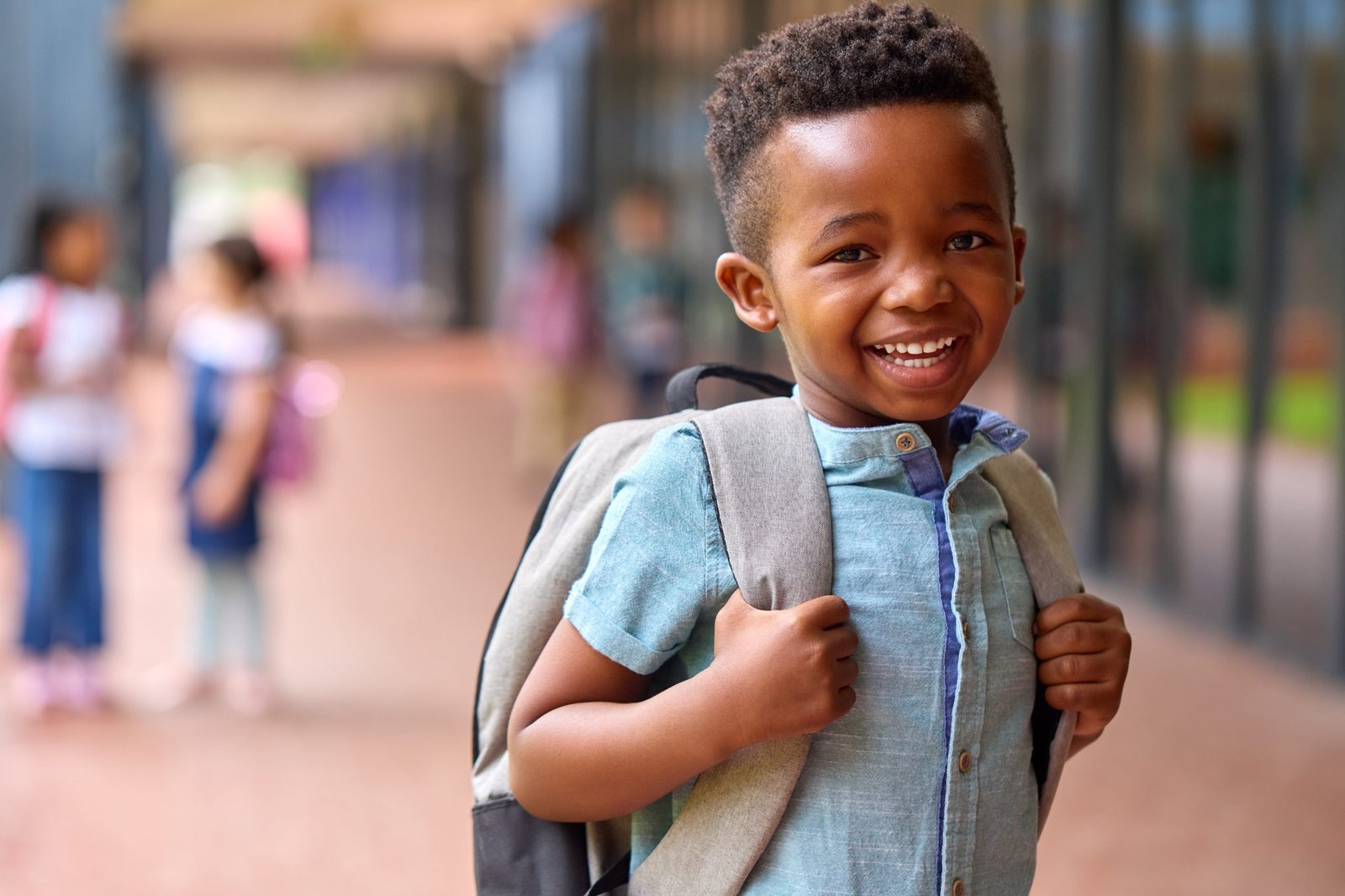Portrait Of Smiling Male Elementary School Pupil Outdoors With Backpack At School