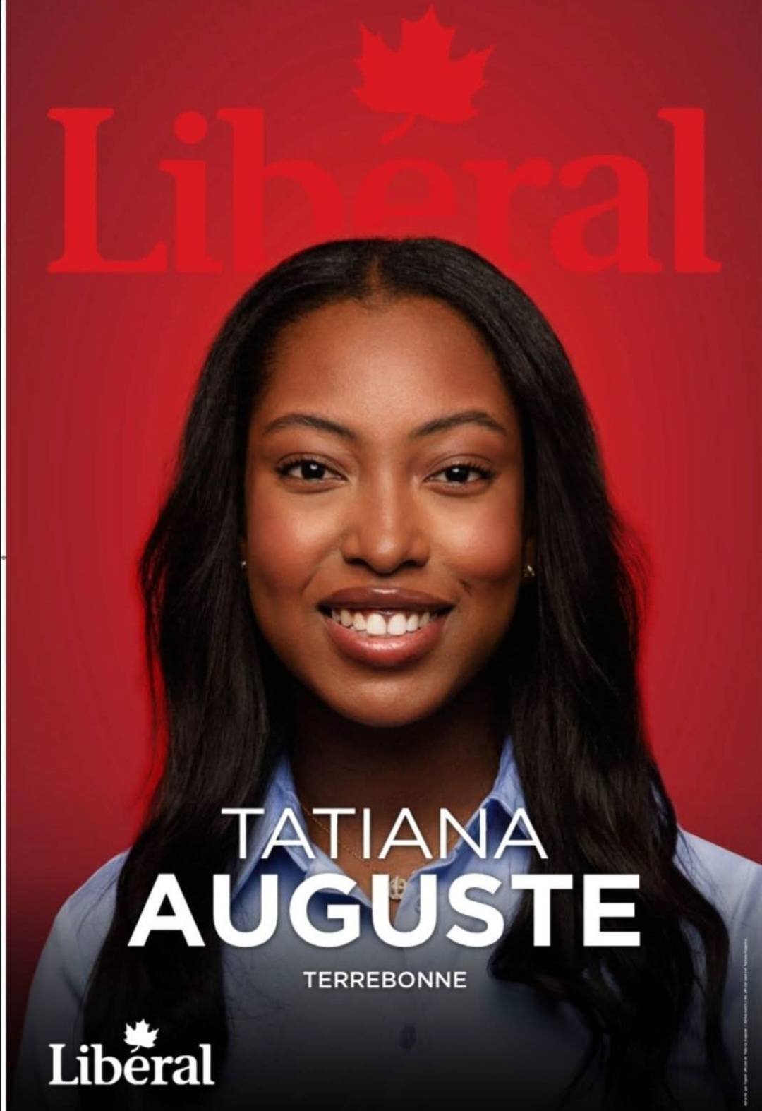 Lors des élections fédérales du 28 avril 2025, Tatiana Auguste se présente sous la bannière du Liberal Party of Canada dans la circonscription de Terrebonne.